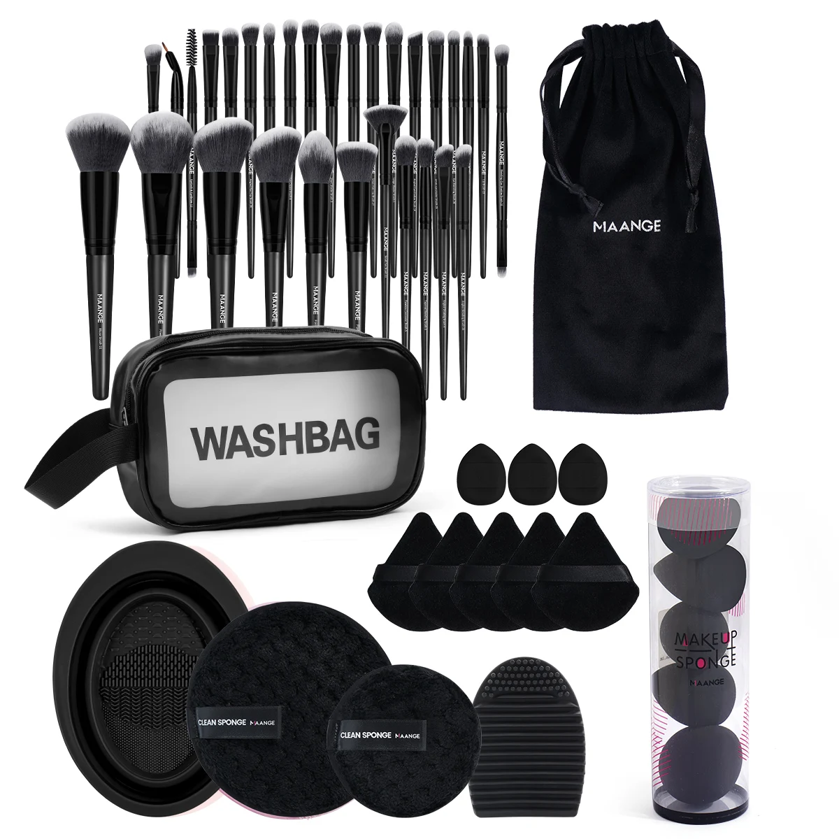MAANGE 49PCS Makeup Tools Kits 30PCS Foundation Makeup Brush with Storage Bag Makeup Remover Puff Triangle Cushion Puff Full Set
